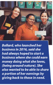 Ballard, who launched her business in 2016, said she had always hoped to start a business where she could earn money doing what she loves, being around nature. She also wanted to be able to share a portion of her earnings by giving back to those in need.